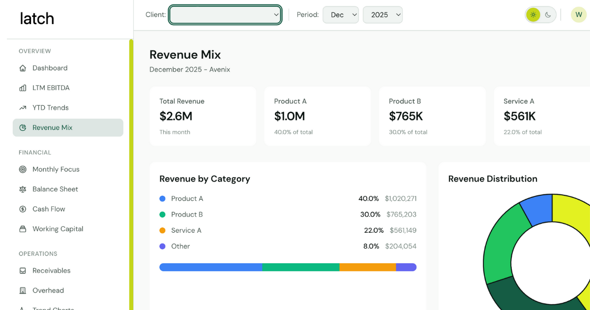 Latch gives contractors something most never have: clear financials they can actually use. Clean books, real job costing, and monthly reporting that shows exactly where you stand. No chasing your bookkeeper. No guessing what you made last month. Just data — so you make decisions with clarity.