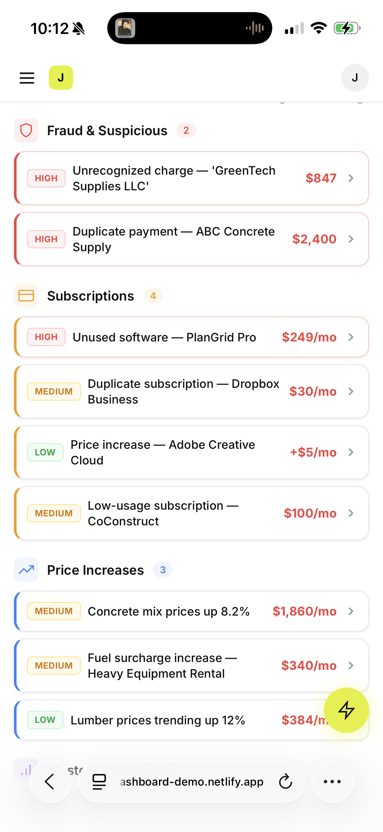 Latch analyzes months of transactions and shows you exactly where money is leaking — duplicate charges, forgotten subscriptions, vendor overcharges, personal expenses on company cards. You see savings day one.